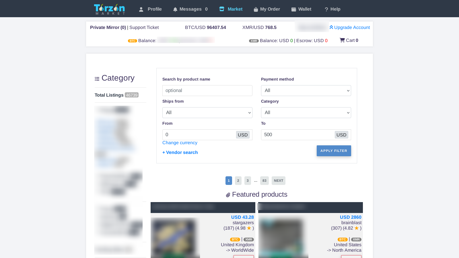 TorZon Market supports Bitcoin and Monero, allowing users to choose between speed and enhanced privacy.